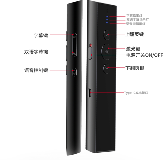 打开电源开关,电脑右下角图标变成红色,短按“语音键”激活软件状态后即可使用。