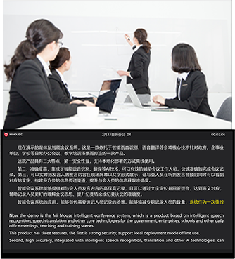 咪鼠智能会议记录系统是一款专业的会议记录解决方案提供实时语音转写、 字幕上屏、会议记录、扫码分享等核心功能,让会议更高端,记录更智能。